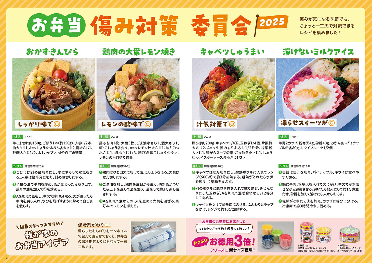 「料理レシピ」を誌面トップ特集に構成。「サンホイル」「おべんとうカップ」など、クライアント様の商品を使用した、アウトドアやおもてなし、防災アイデアをご紹介しています。「フィルたん®」フィルターシリーズなどハウスケアアイテムは、シーズンのお悩みに沿ったアプローチ特集を行うことで、商品のご紹介を越えた「暮らしが楽しくなるご提案」を行ってきました。