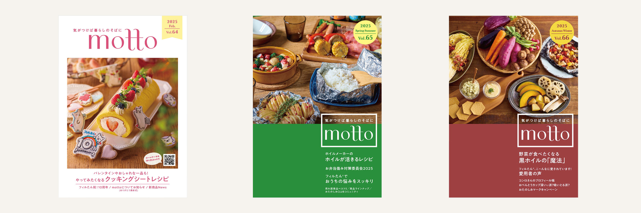 『motto』は、東洋アルミエコープロダクツ株式会社様が発行される、生活者向け情報誌。オールカラー12ページ、年2回の発行の他、デジタルコンテンツとして無料配信されております。新商品など自社製品の紹介の他、自社製品を使用した生活提案を行われています。
